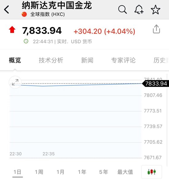 中概股集体大涨,纳斯达克中国金龙指数暴涨4%,百度涨11.35%,富途控股涨6.84%,哔哩哔哩涨6.87%,网易涨6.77%,老虎证券涨5.54%,36氪涨4.85%,房多多涨4.79%,蔚来涨4.64%,阿里巴巴涨4.55%,霸王茶姬涨4.47%,腾讯控股ADR涨4.30%,新东方涨4.15%,微博涨3.82%,爱奇艺涨3.39%,理想汽车涨3.01%,高途涨3.02%,贝壳涨2.79%,迅雷涨2.82%,京东涨2.34%。